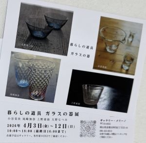 暮らしの道具 ガラスの器 2026/4/3(金)-12(日)小谷栄次・尾崎加奈・上野亜依・大野なつみ